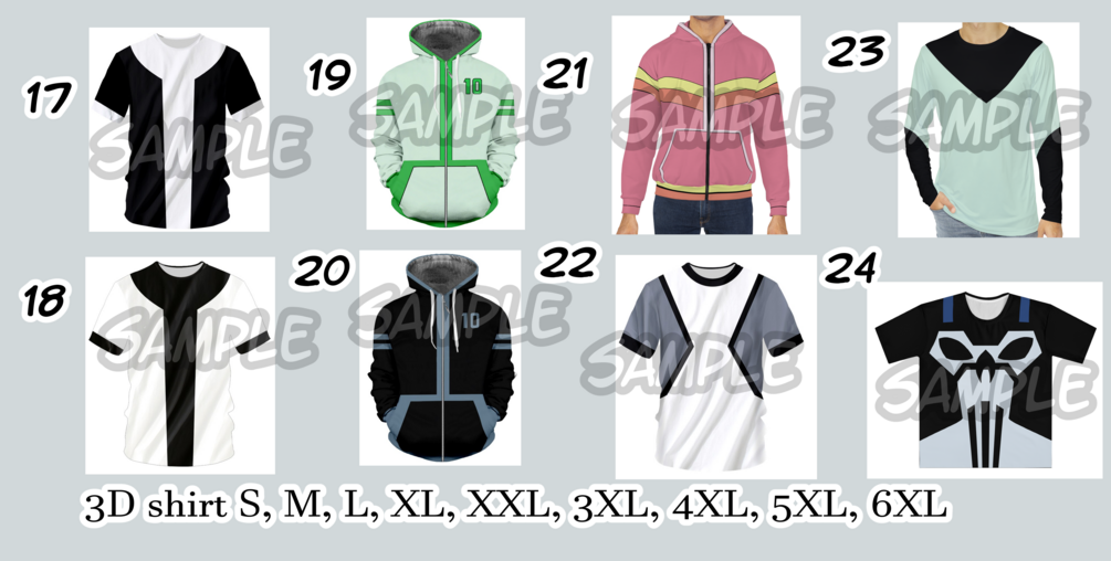 I have smaller sizes available for short and long sleeve shirts and hoodie (Kid's size), you can ask or see the last image (I don't add those sizes to the sale list because they are not available in Hawaiian shirt, jacket and tank tops ).